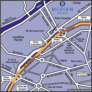 Das Hotel Median Paris Congres liegt in nur 500 Meter Entfernung von der U-Bahn-Station RER- Porte de Clichy.
