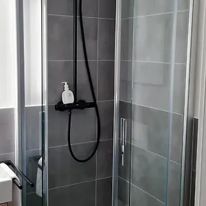 Eine Badewanne und eine Sauna sowie Annehmlichkeiten wie ein Haartrockner und Toilettenartikel sind ebenfalls vorhanden.